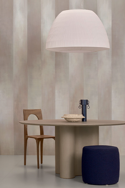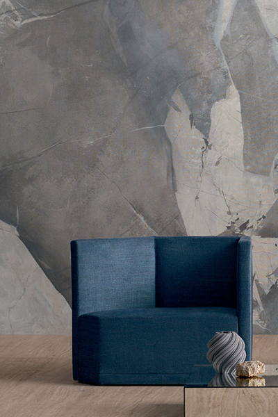 Dompel jezelf onder in de fabelachtig technische poëzie van faux marmer, met een eerbetoon aan de traditionele praktijken van geschilderd decor. Het marmer wordt hier opnieuw bekeken vanwege zijn grafische kwaliteiten, die schommelen tussen hard en zacht, stevig en geruststellend.