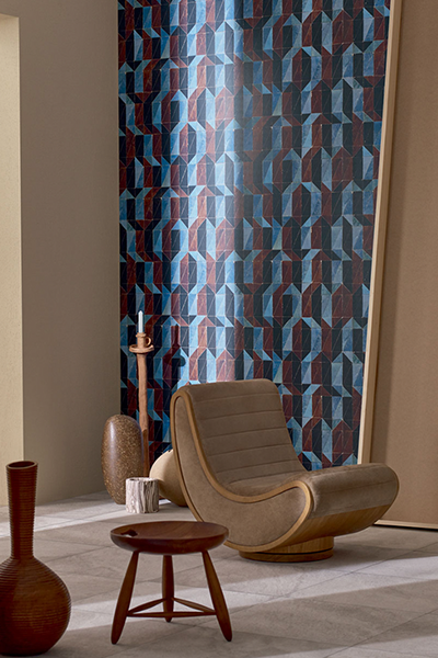 Samir Mazer, van oorsprong Marokkaanse kunstenaar vormt terracotta tegels om tot eigentijdse kunstwerken. De kunstenaar hanteert eindeloze ritmische composities met een experimentele vrijheid. Deze traditionele kunst heeft Samir Mazer weten te vertalen tot een behang collectie.